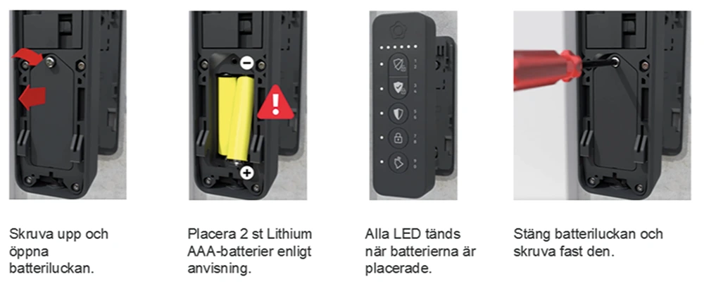 Här hittar du en guide om hur du byter batterier i Larmpanel utomhus.